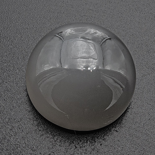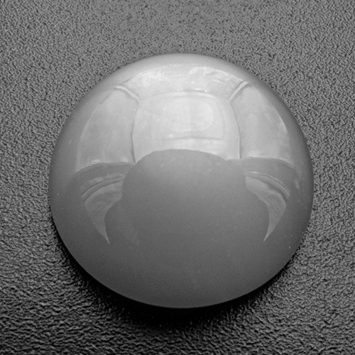 Hoch gewölbter mittelgrauer Mondstein, der bei Sonnen- o. Punktlicht ein schönes Katzenauge zeigt
