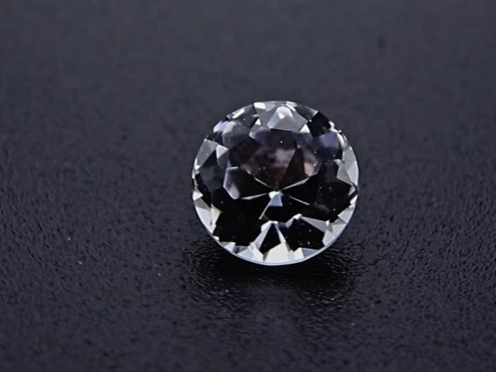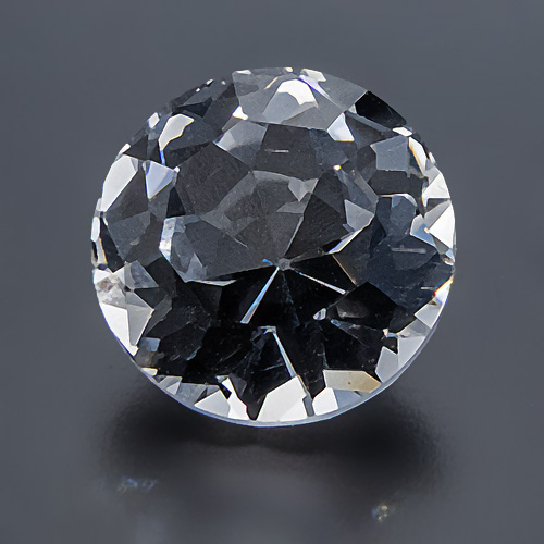 Sehr hübscher kleiner Silbertopas. Altschliffdiamant-ähnlich, mit etwas höherem Oberteil, kleinerer Tafelfacette, polierter Kalette aber unpolierter Rundiste