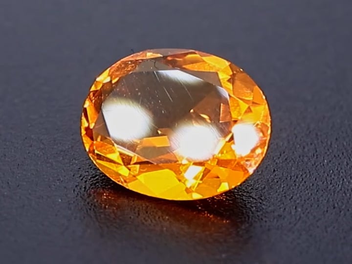 Shows almost none of the milkyness otherwise quite typical for Brazilian fire opal. The high content of water (up to 20%!) in opal may cause problems. When opal gives off its water this can lead to haziness or the development of cracks. We bought this gem in 2015 and kept it try, so nothing of this should happen.