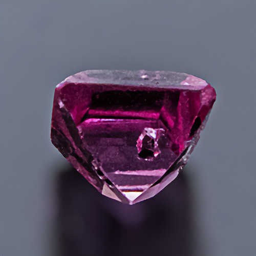 A clearly visible, well defined mineral inclusion, probably pyrite, is proof that this ruby has not been subjected to high-temperature treatment to improve its colour.